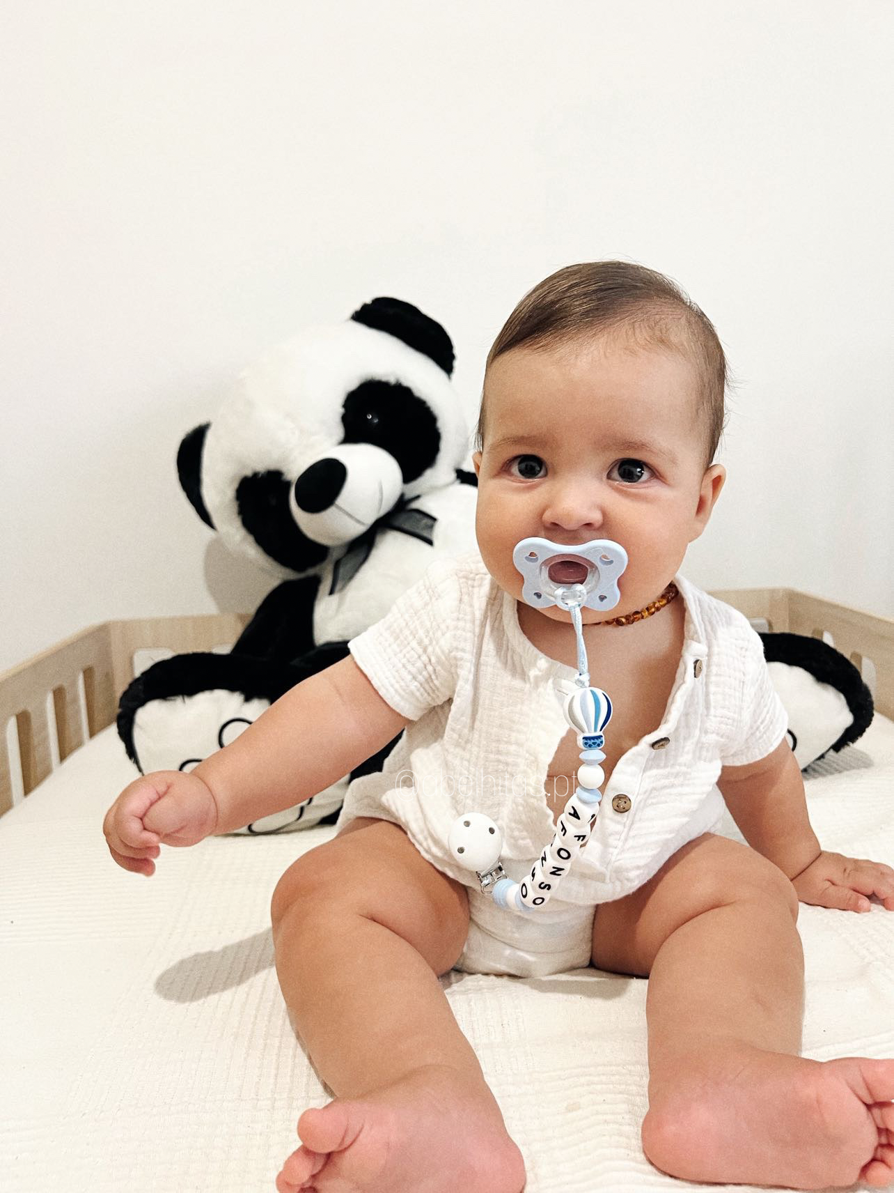 Desde que a chupeta tenha algum buraquinho por onde consiga fazer passar o fio, sim. Também vendemos adaptadores para as chupetas que não têm argola e têm forma redonda na parte da frente, tal como as chupetas mam.