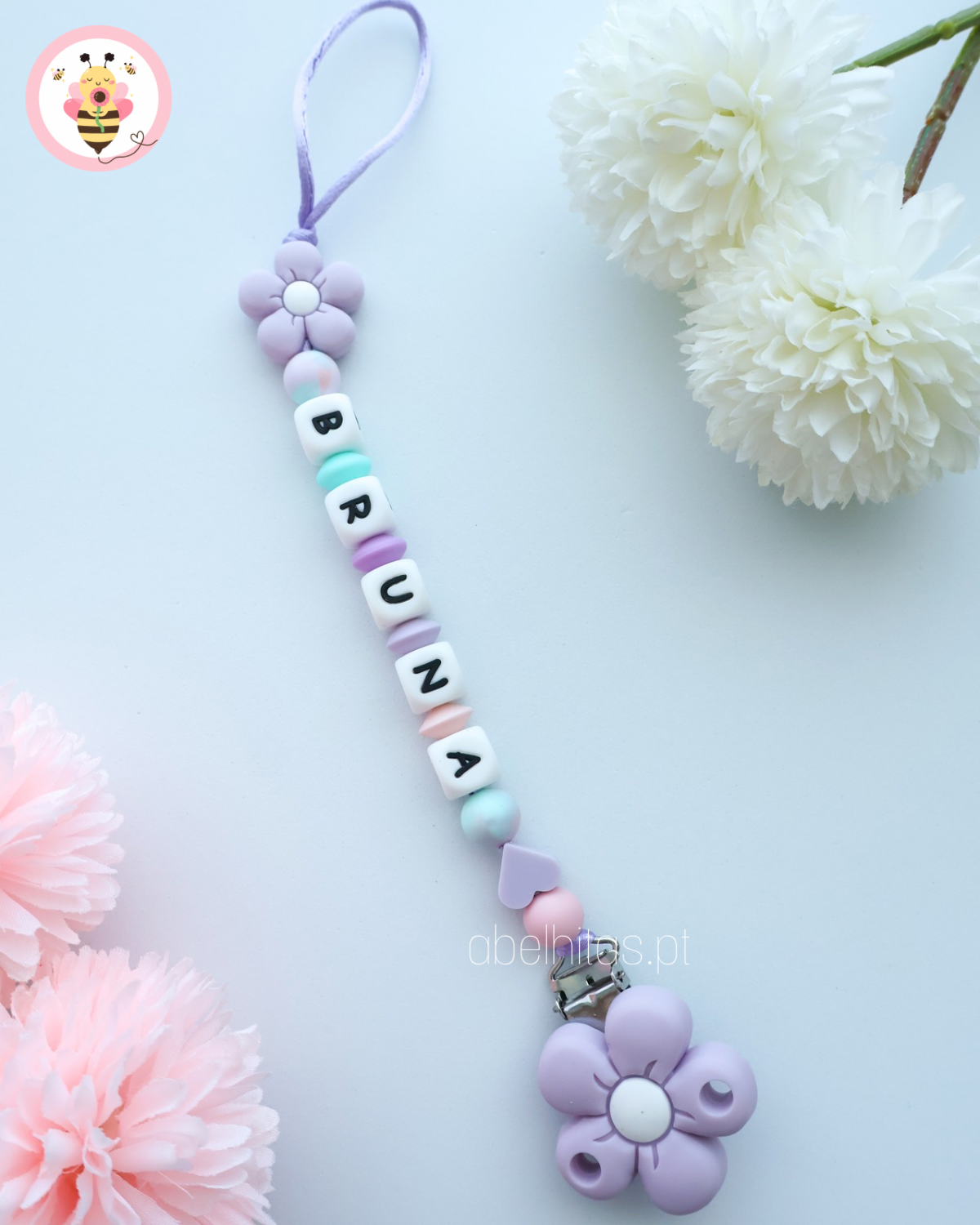 Macio e flexível. Ideal para identificar e manter a chupeta limpa e segura.