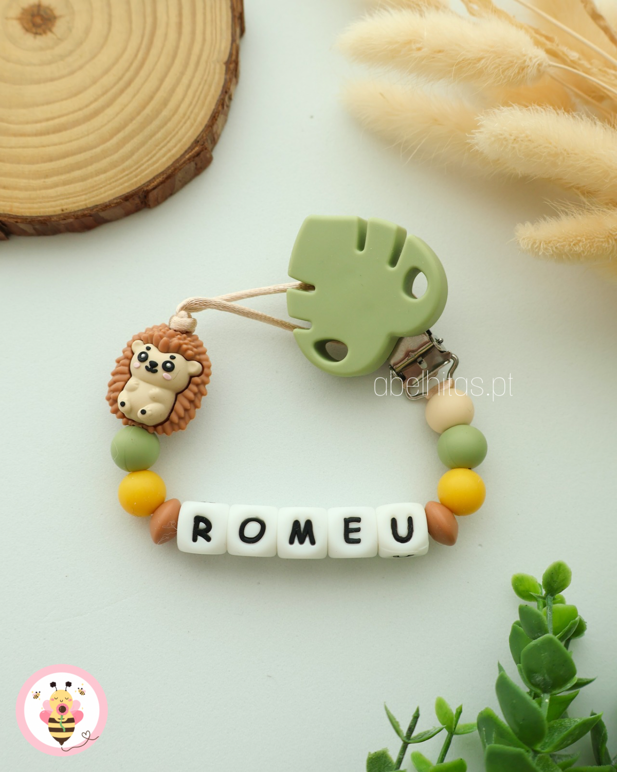 Prendedor de chupeta com nome - Ouriço