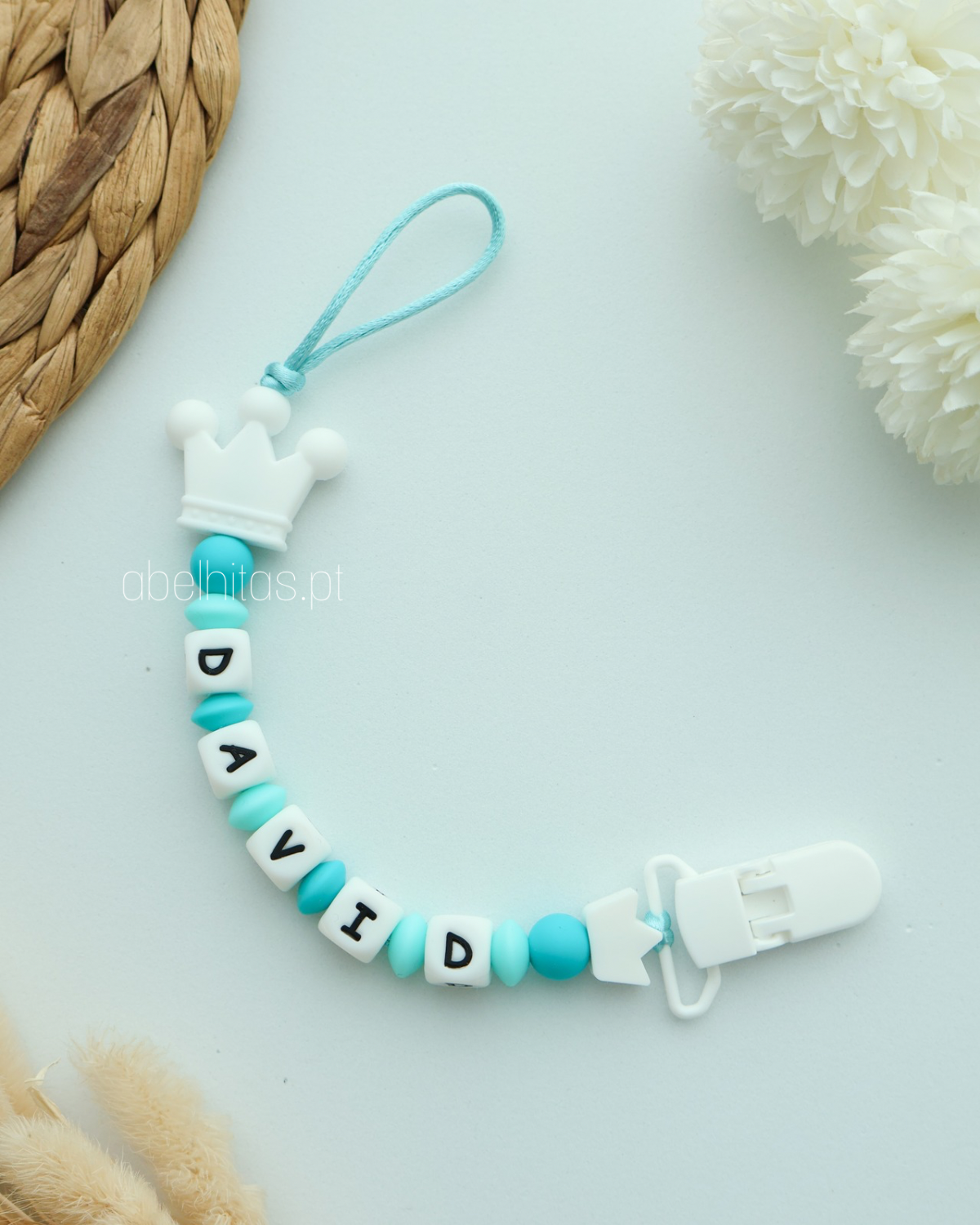 Prendedor de chupeta com nome - Tons verde