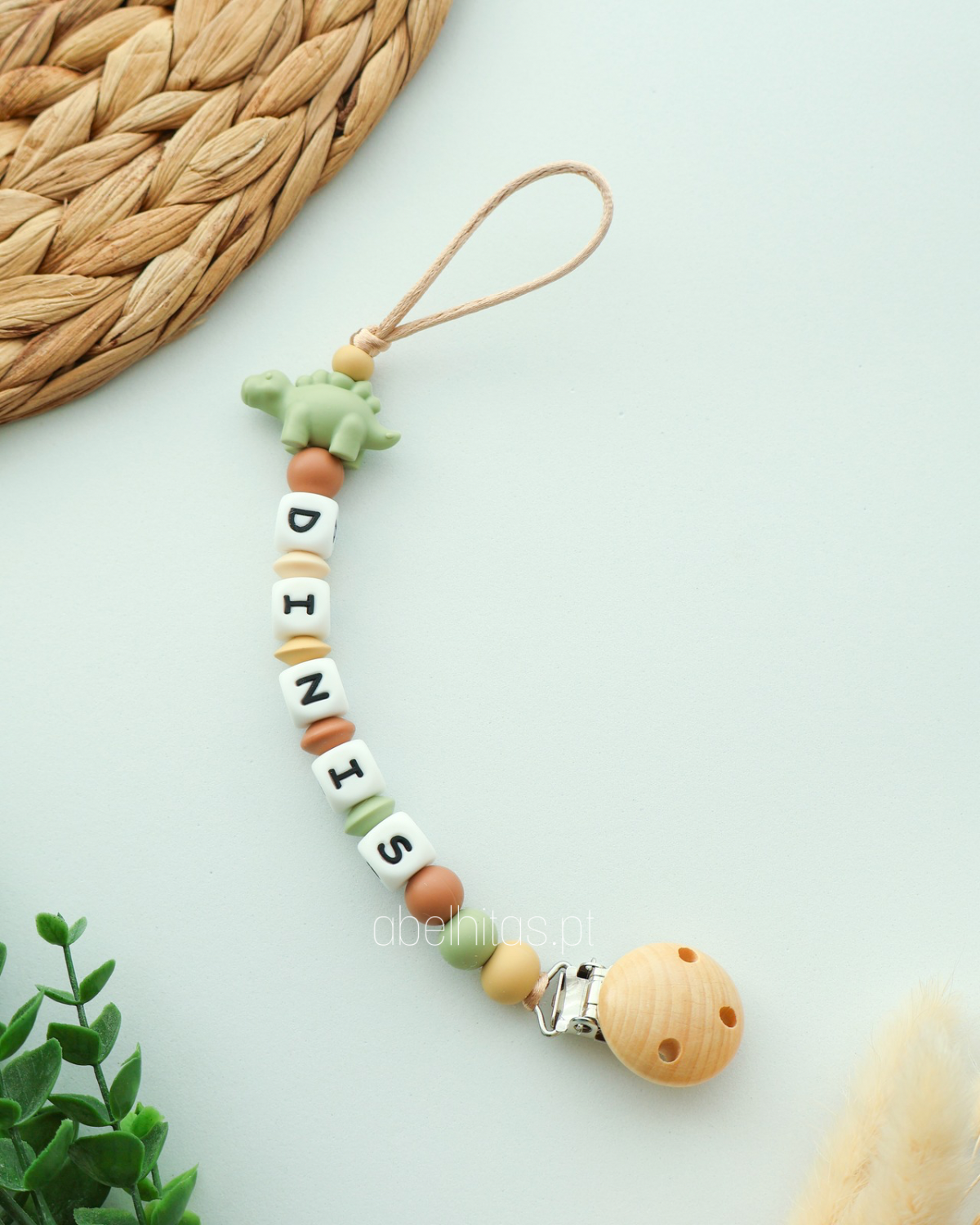 Prendedor de chupeta personalizado com o nome do bebé para torná-lo uma peça única e original.