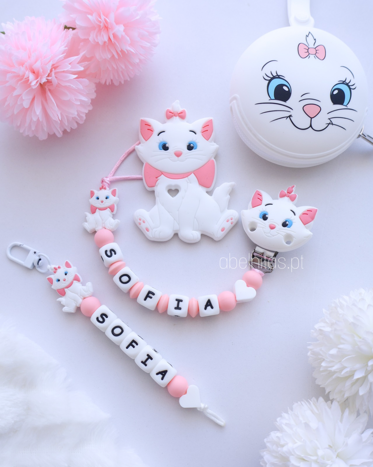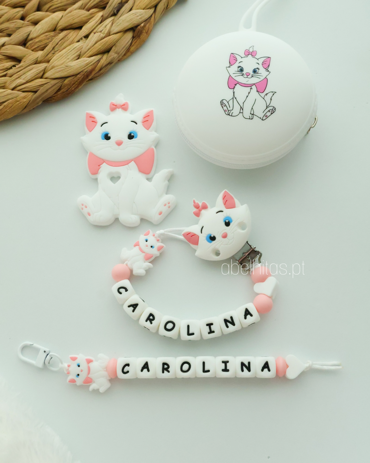 1 prendedor de chupeta + 1 mordedor + 1 bolsa porta-chupetas + 1 identificador de mochila
