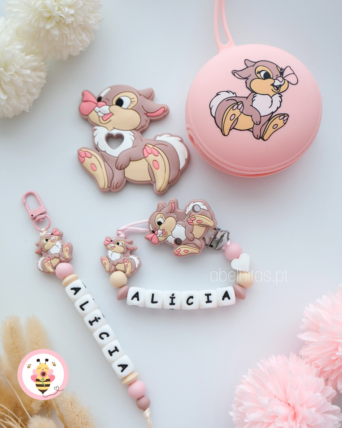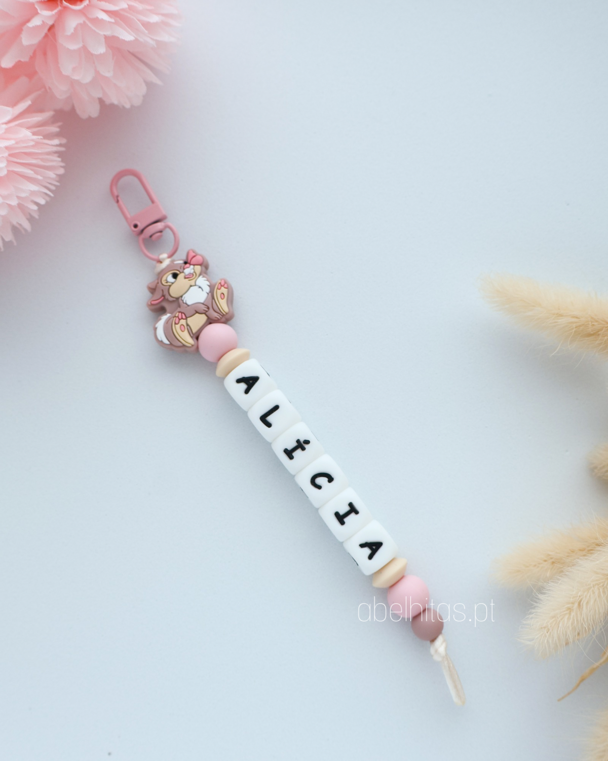 Prendedor de chupeta personalizado com o nome do bebé para torná-lo uma peça única e original.