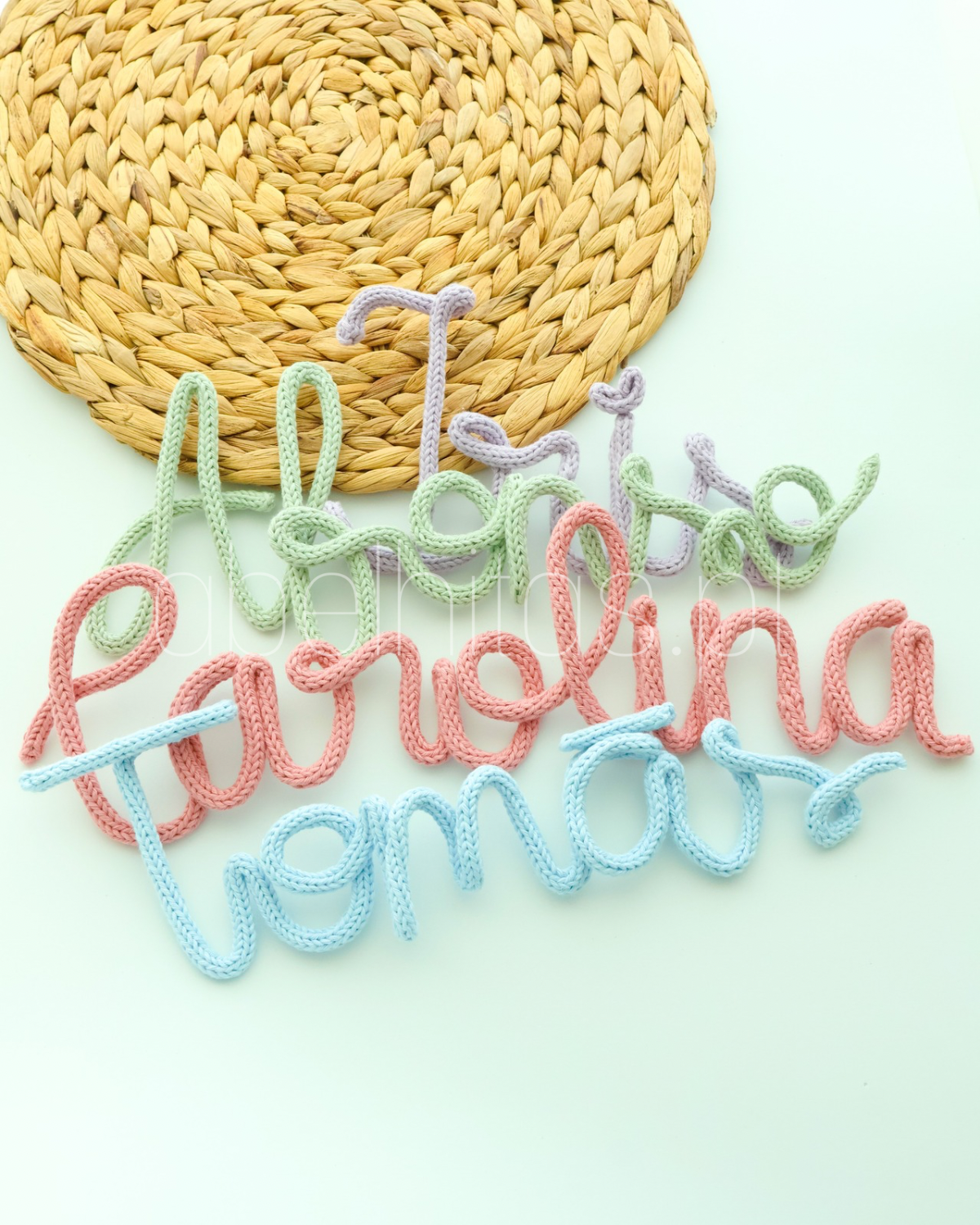 Nome ou palavra em tricotin. Ideal para decorar o quarto do bebé!