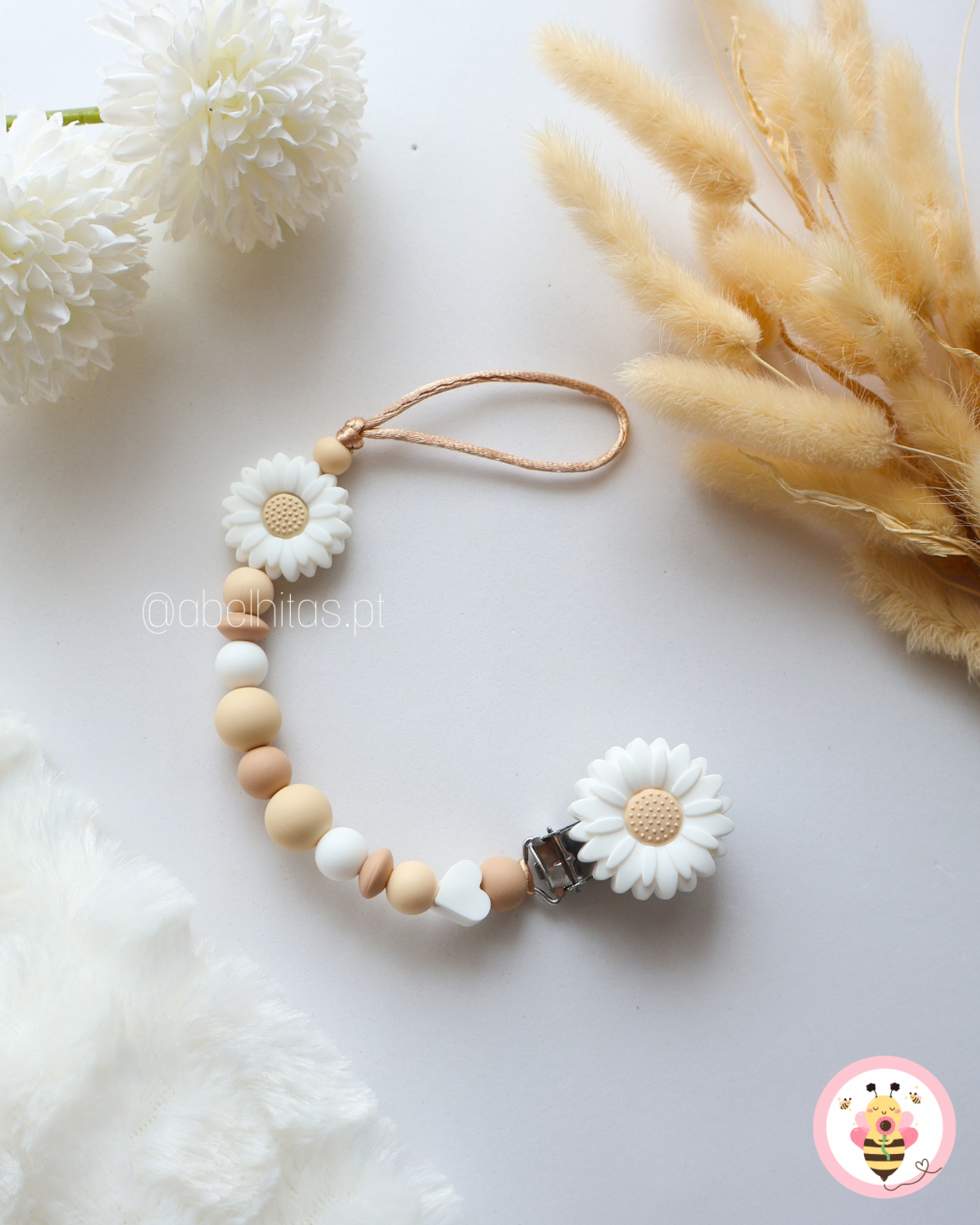 Prendedor de chupeta sem nome - Flor branca