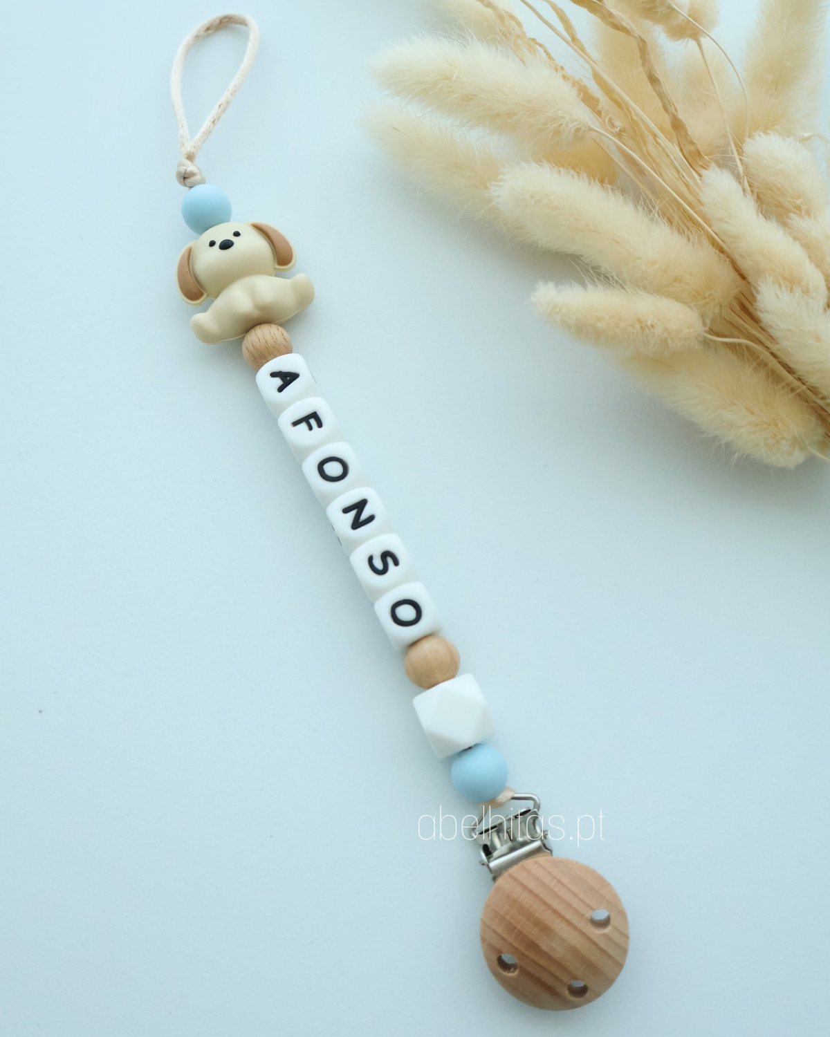 Prendedor de chupeta com nome - Cão