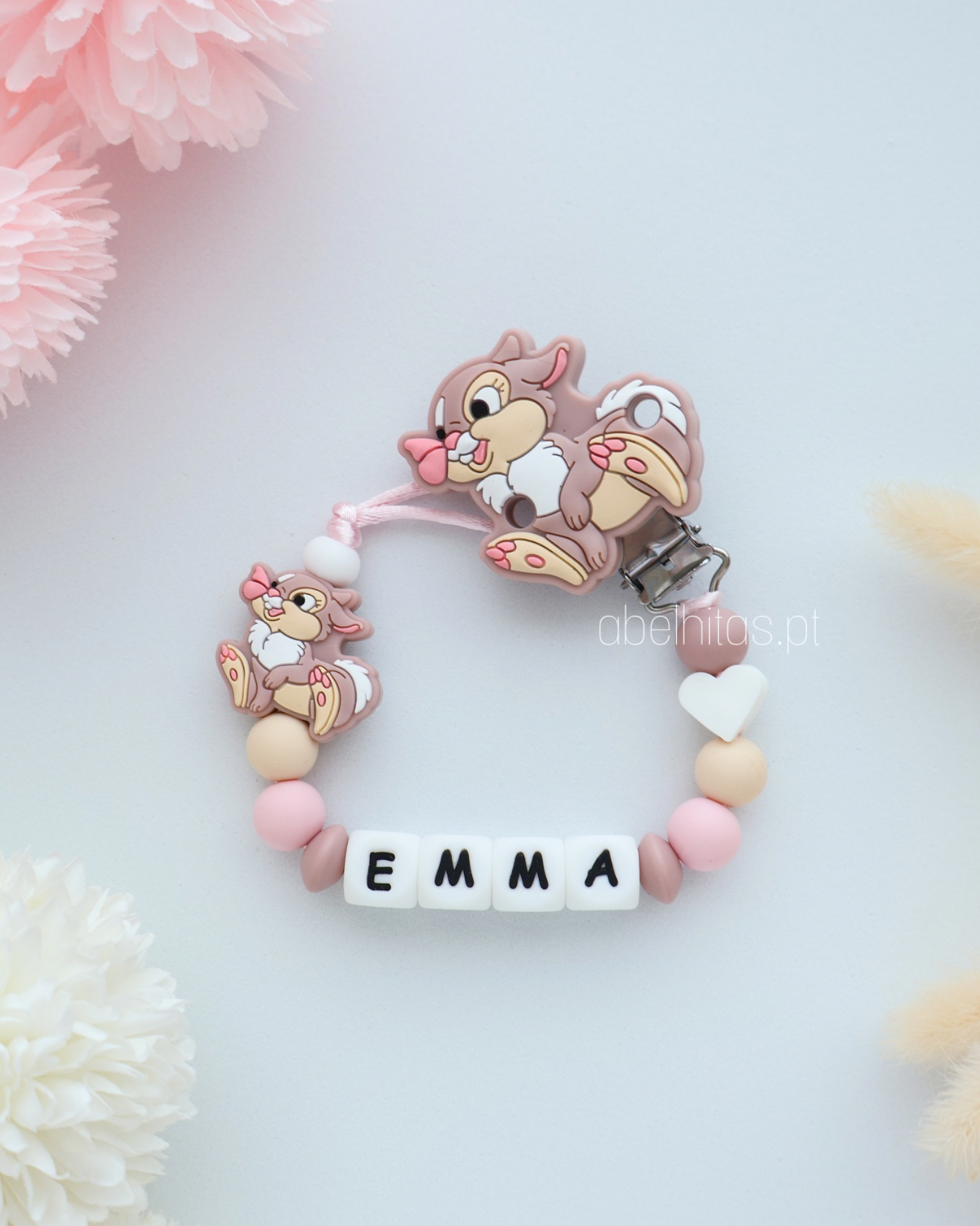 Prendedor de chupeta com nome - Miss Tambor