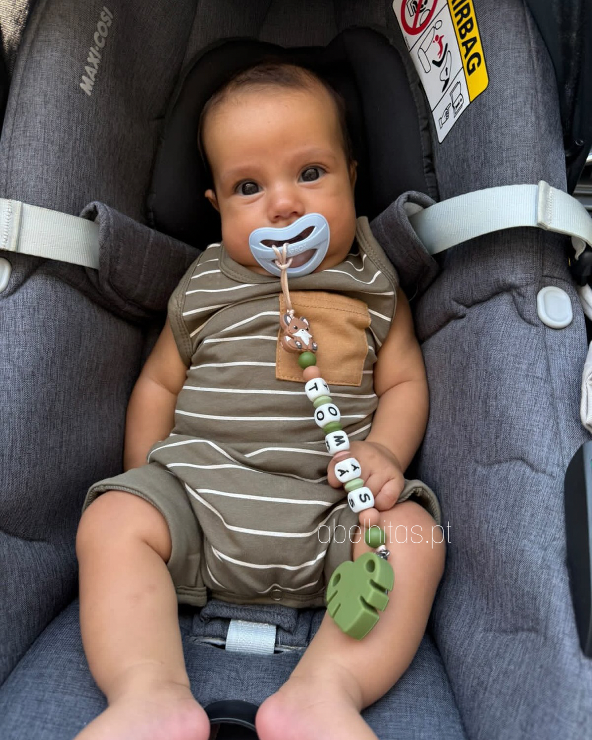 - Recomendamos prender a mola apenas nas roupas do bebé, pois pode partir ao ser presa a outros materiais.
