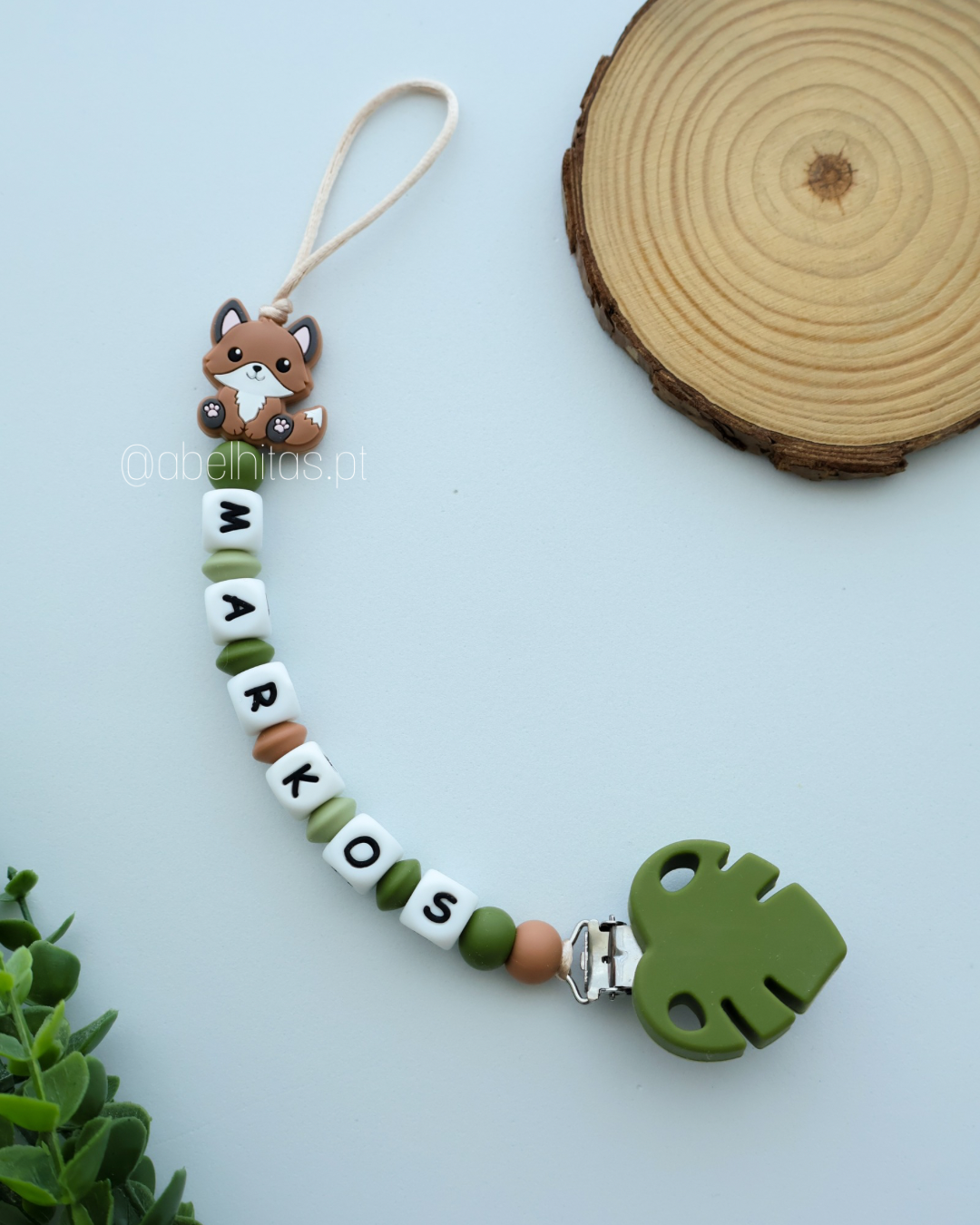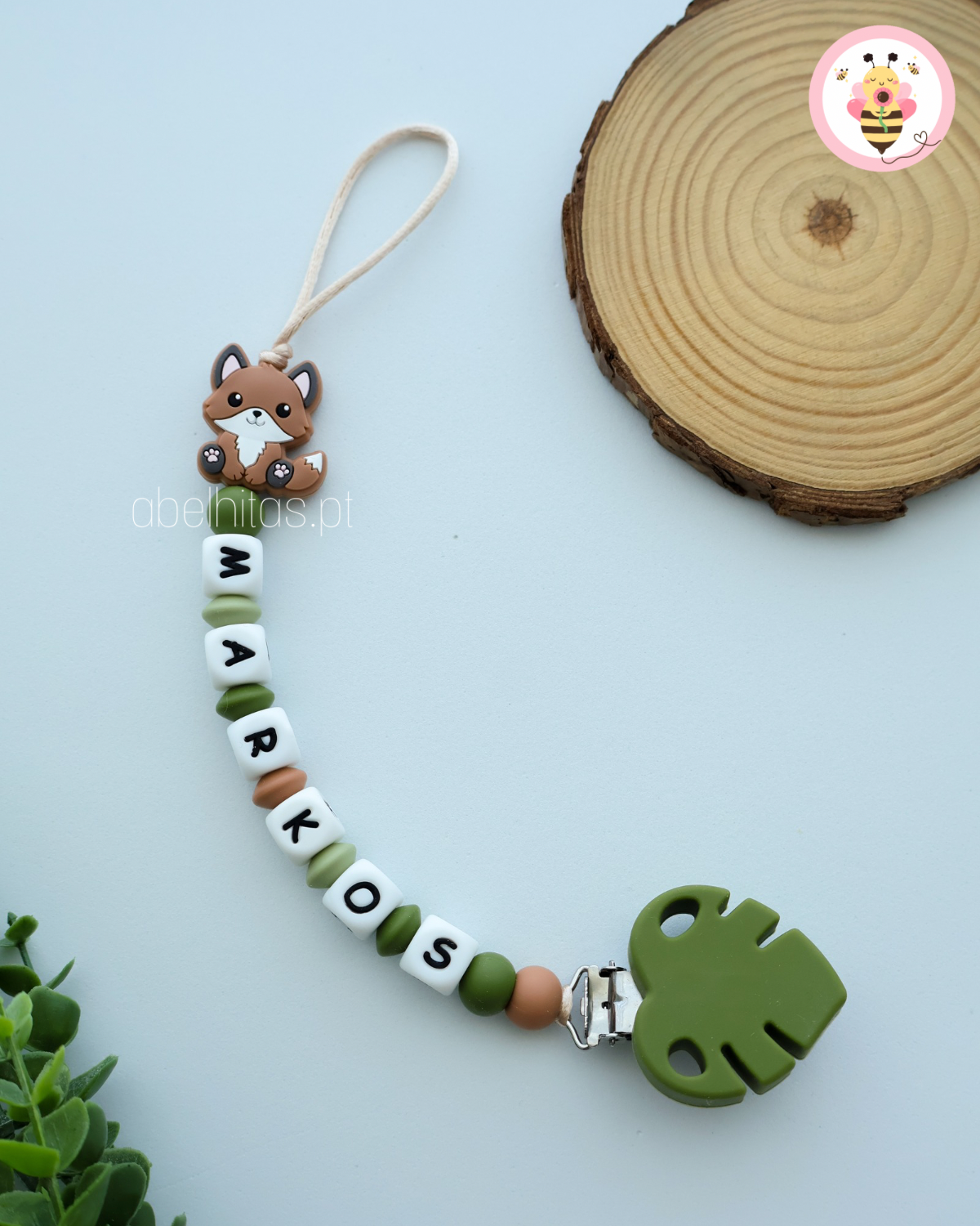 Prendedor de chupeta com nome - Raposa