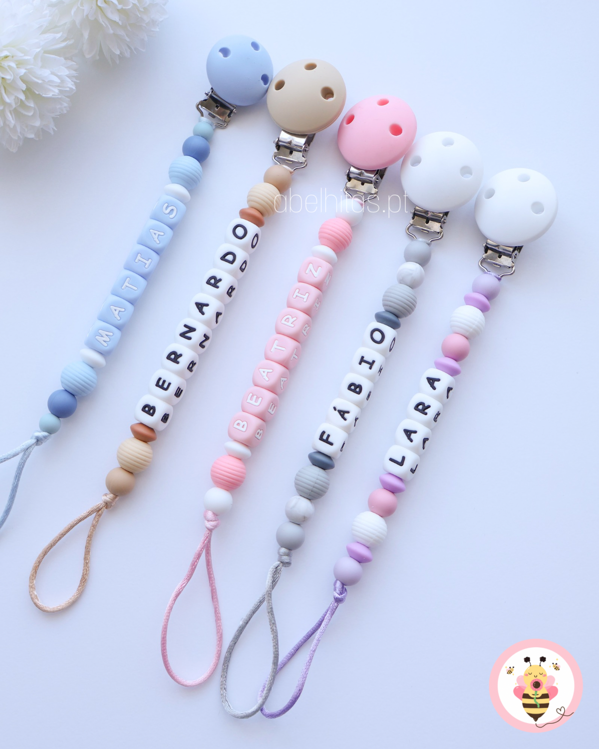 Macio e flexível. Ideal para identificar e manter a chupeta limpa e segura.