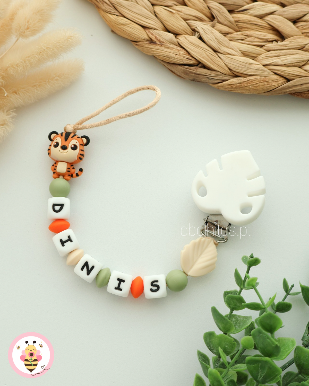 Prendedor de chupeta com nome - Tigre