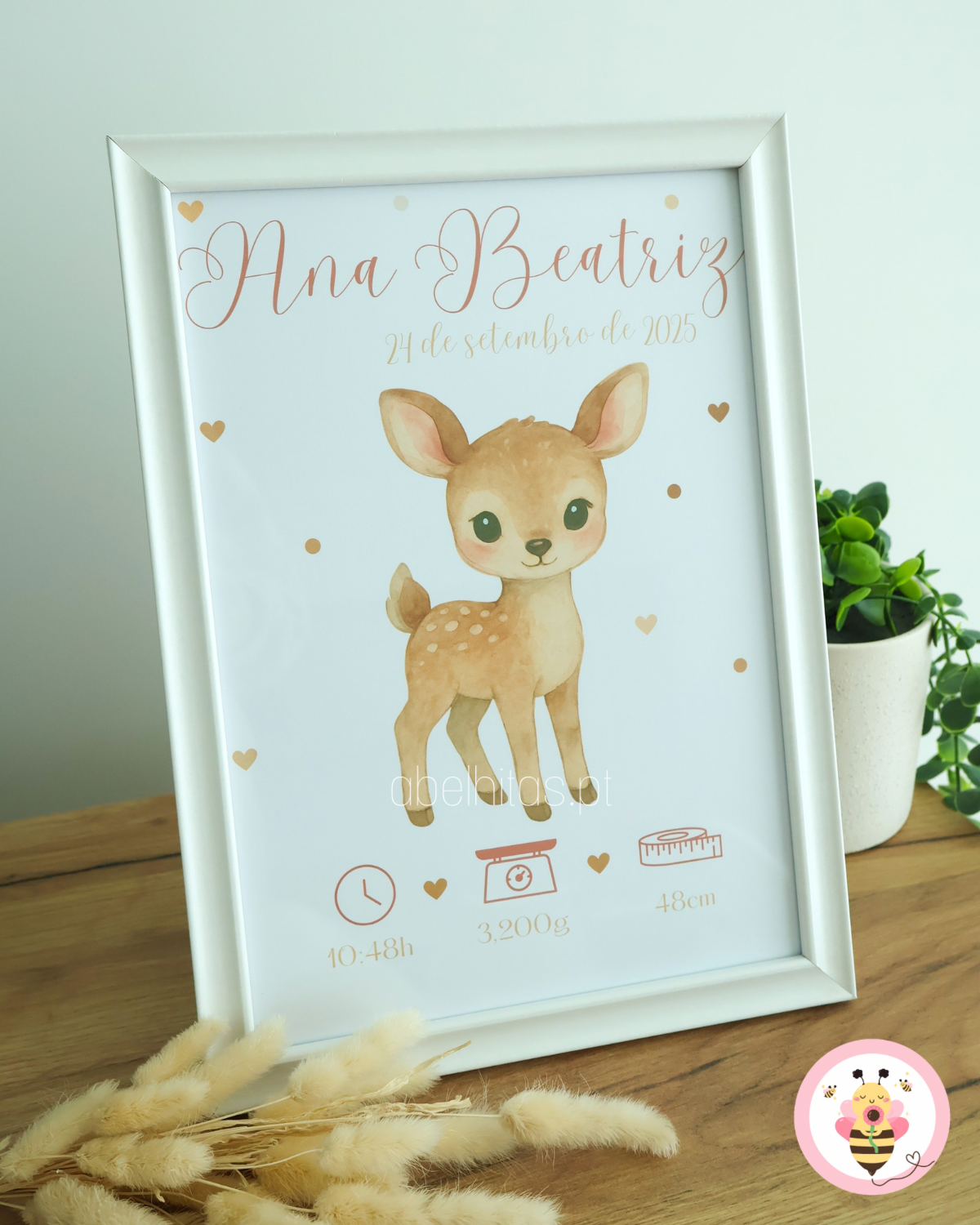Feito para decorar o quartinho do bebé, perfeito para oferecer a qualquer recém mamã que com certeza irá amar ter uma recordação de um dos dias mais especiais da sua vida!
