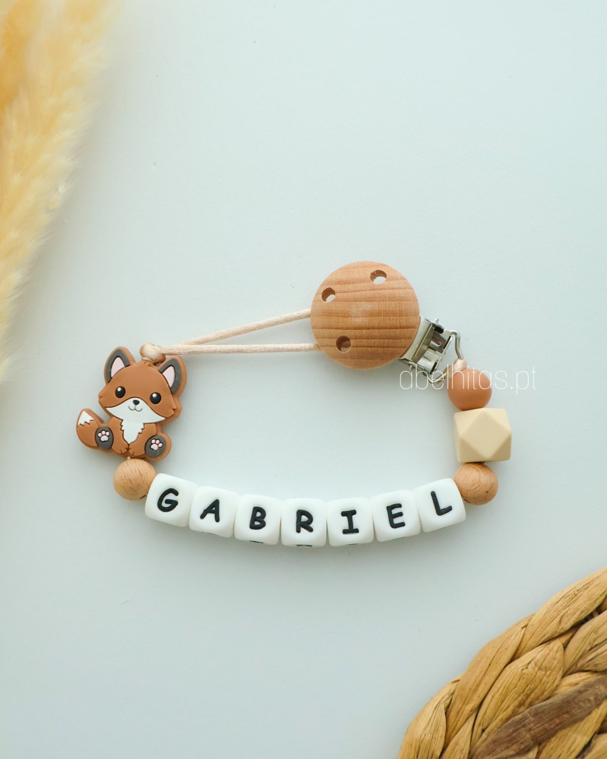 Prendedor de chupeta feito de silicone de grau alimentar e madeira natural.